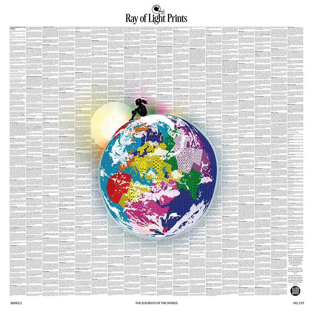 This realisation inspired the The Evolution of the Universe Print, which explores the creation of the universe, stars, and elements, and the The Elements of the World Print, which focuses on the 94 elements that naturally occur on Earth.