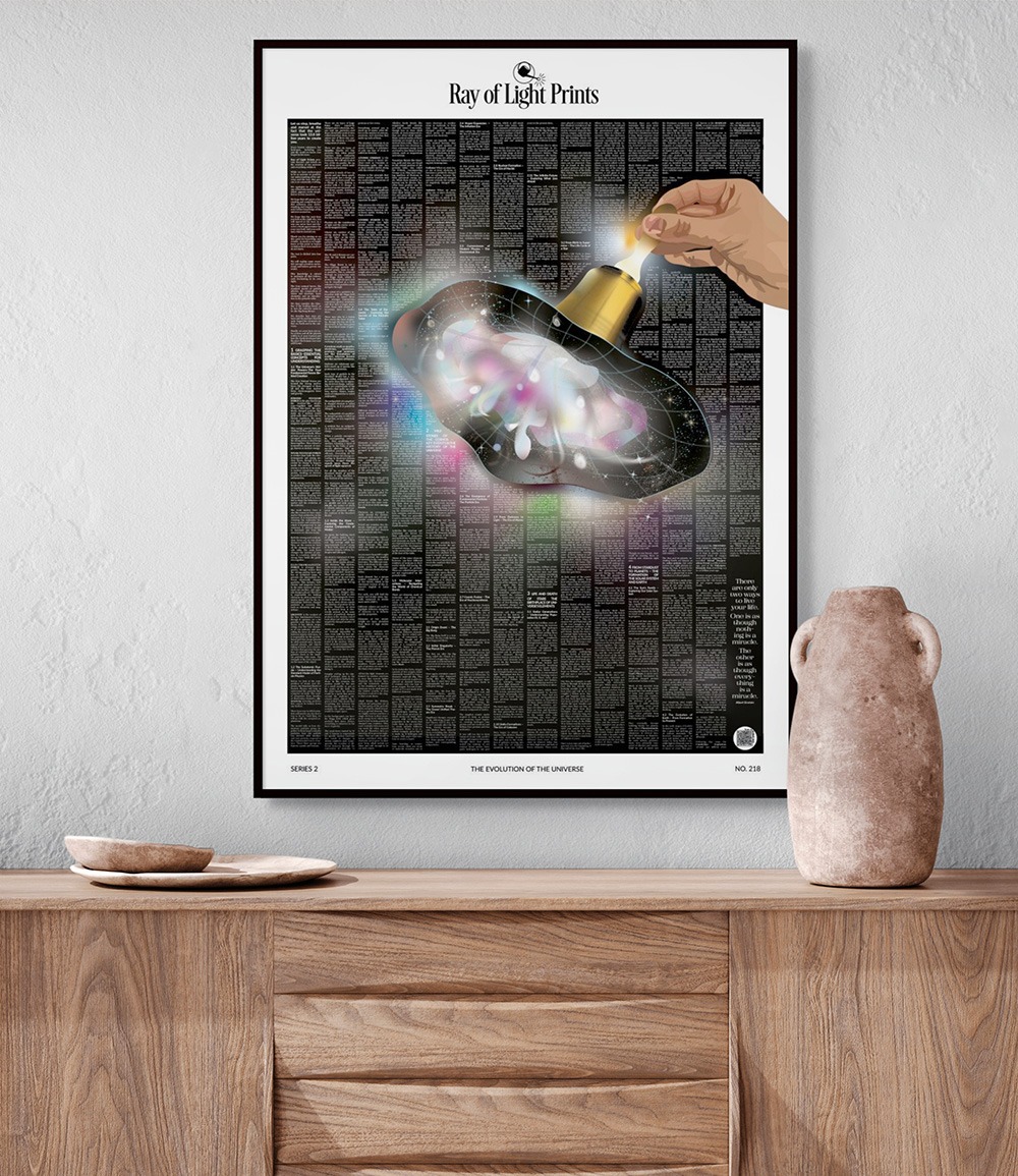 This realisation inspired The Evolution of the Universe Print, which explores the creation of the universe, stars, and elements, and The Elements of the World Print, which focuses on the 94 elements that naturally occur on Earth.