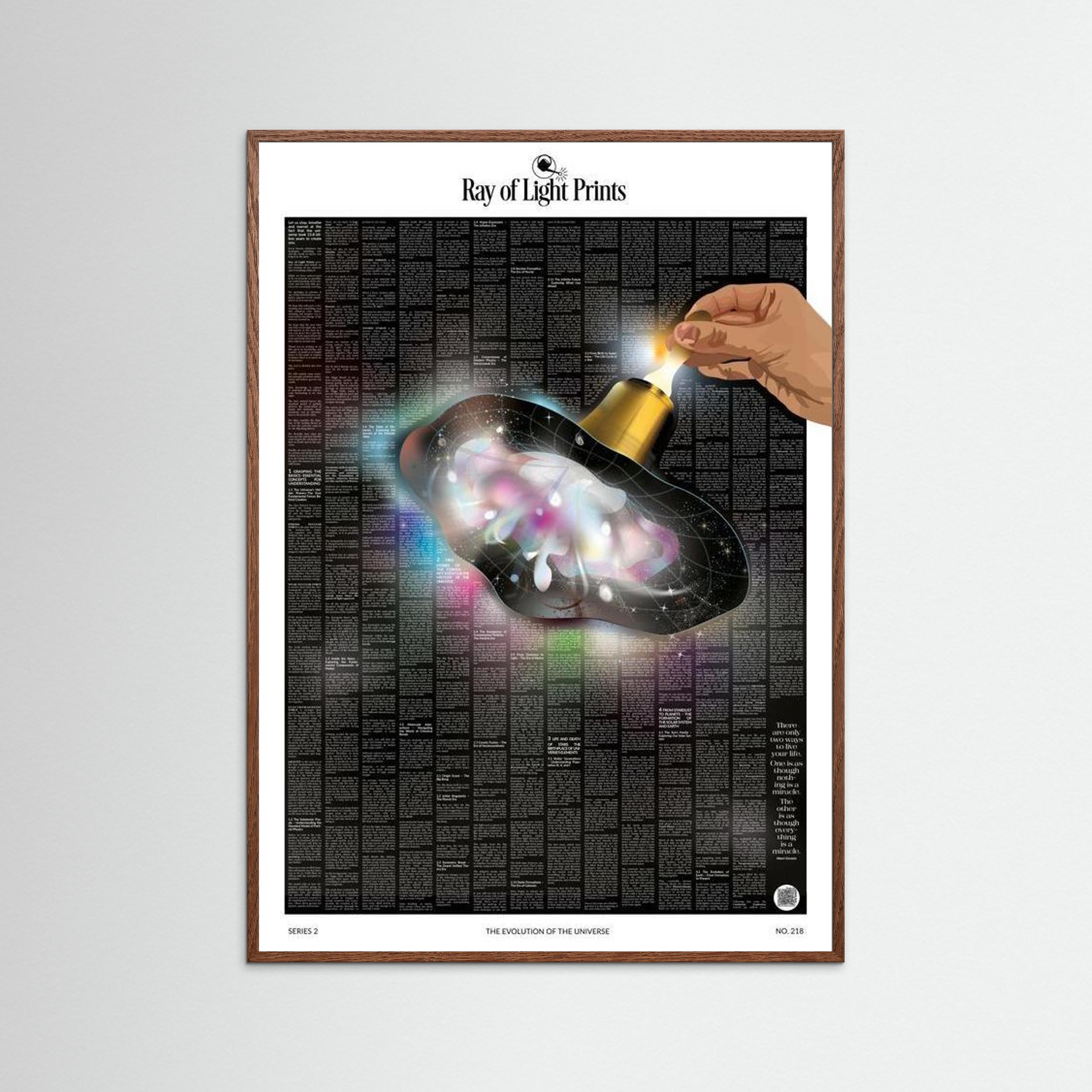 Each print includes a QR code that grants access to the full written content, allowing you to explore the story of the universe anytime on your phone, tablet, or computer.