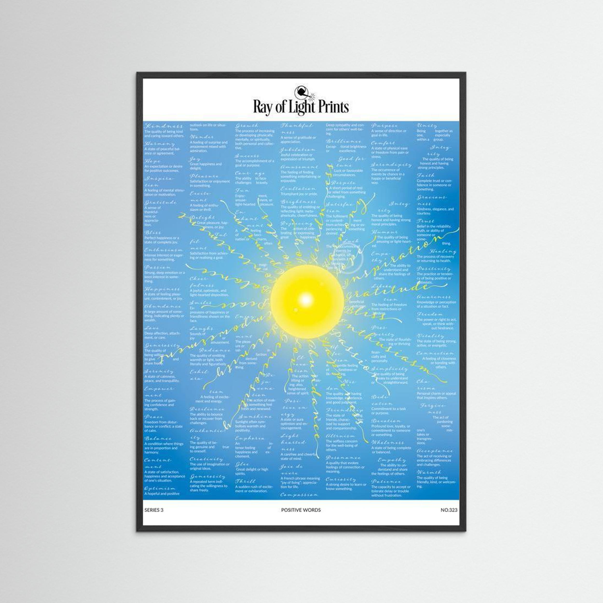The Positive Words Print features thoughtfully chosen words that radiate light and joy—words that calm the mind, inspire optimism and evoke uplifting feelings.